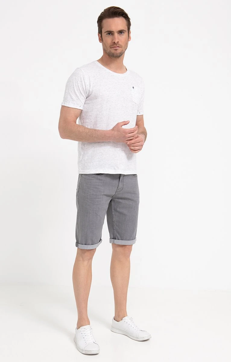Bermuda en denim contenant du polyester recyclé. Coupe ajustée. Fermeture zippée et boutonnée. 2 poches italiennes et une poche ticket devant. 2 poches plaquées au dos. Bermuda uni en denim extensible. Ourlets retroussés. Passants pour ceinture. Rivets gravés sur les poches. Coutures ton sur ton. Composition en coton majoritaire et contenant 25 % de polyester fait à partir de bouteilles en plastique recyclées. Notre mannequin Maxime mesure 1m88 et porte un bermuda taille 42.