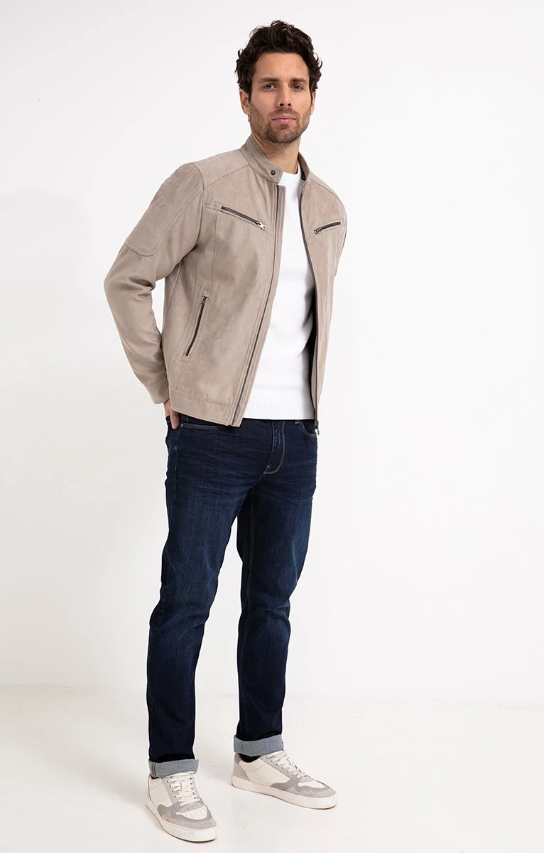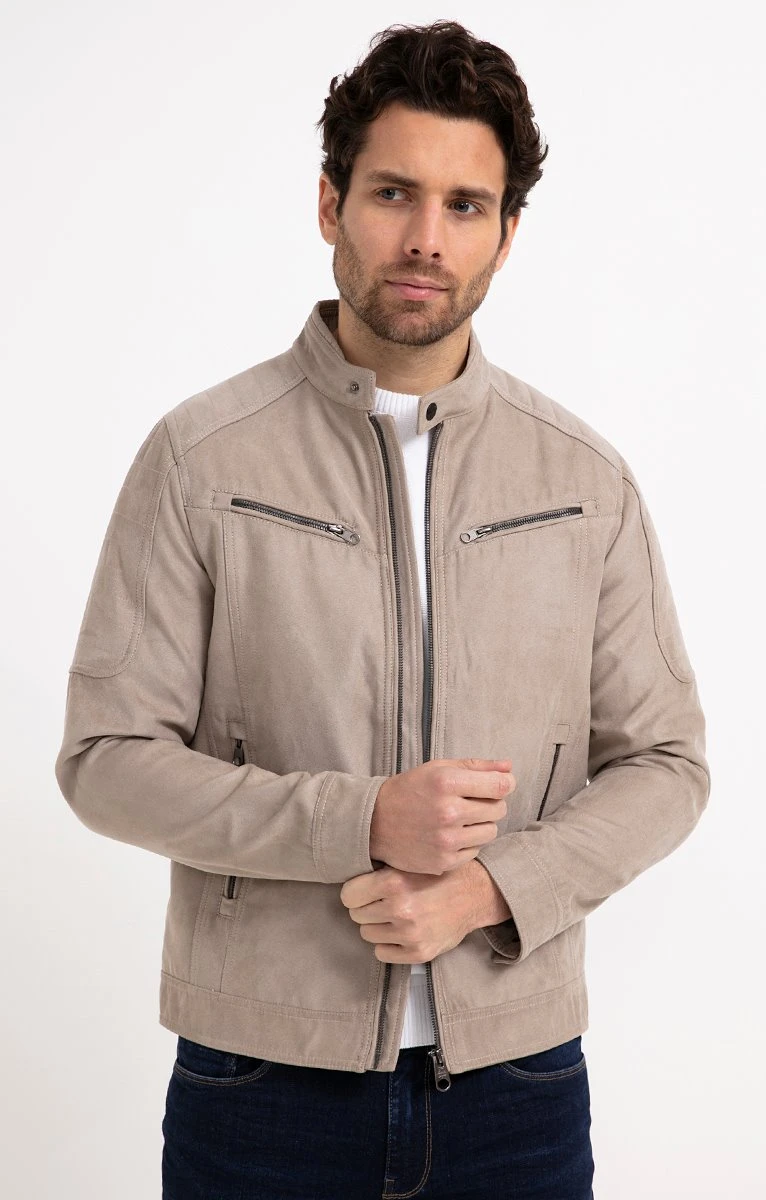 Blouson biker imitation suédine, avec fermeture zippée et bouton pression au col. Empiècements matelassés sur les épaules. Fermeture aux poignets par 2 boutons pressions permettant d’ajuster l’ouverture à la bonne taille. Ce blouson possède 4 poches avec fermeture zippée à l’extérieur. A l’intérieur vous trouverez une poche à fermeture zippée et une poche à fermeture pression. Notre mannequin Joffrey mesure 1m88 et porte un blouson taille M.