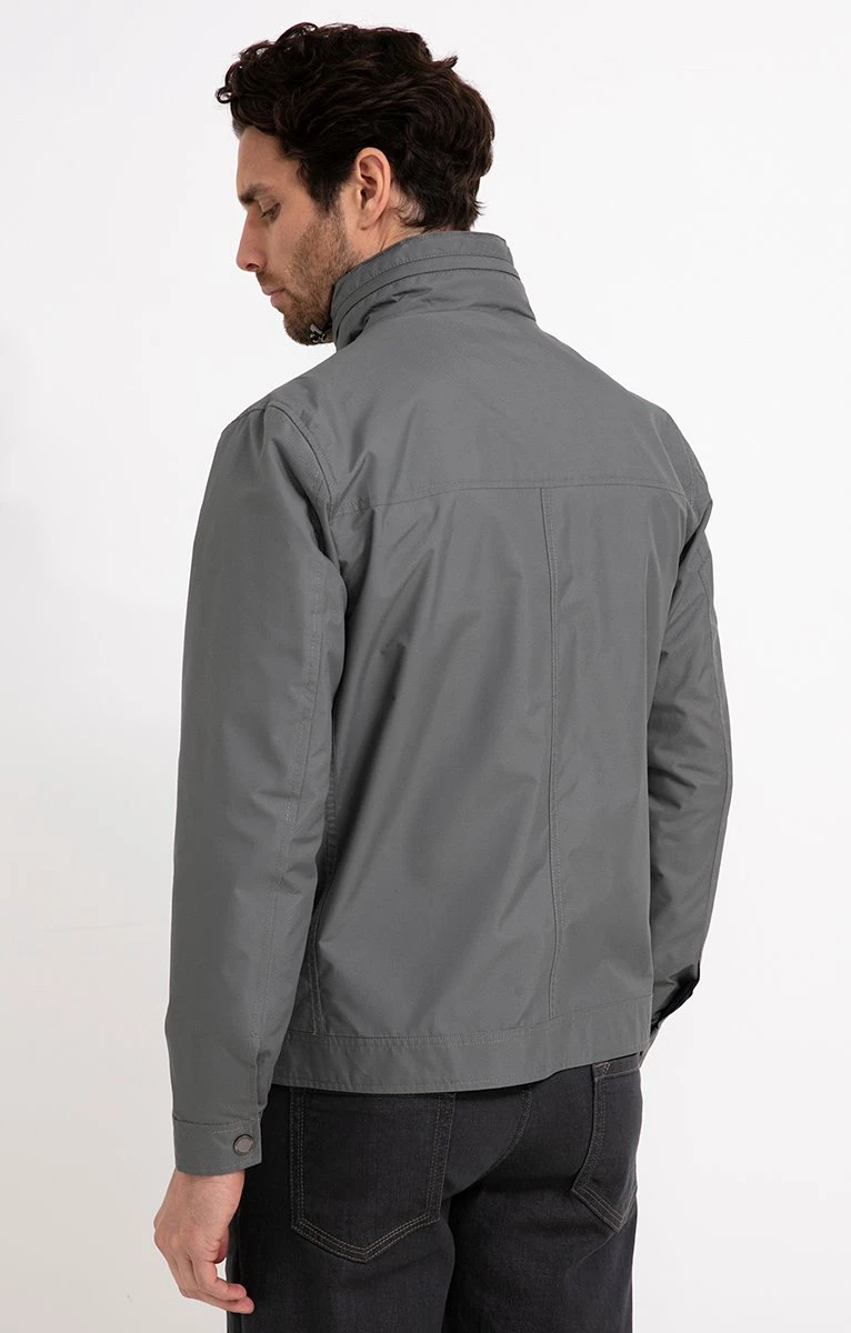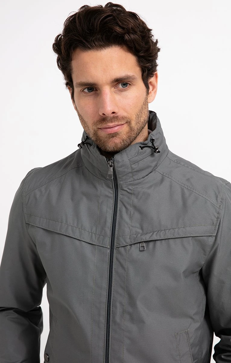 Blouson à fermeture zippée, col montant avec une capuche cachée dans le col. Cordon d’ajustement de la capuche au niveau du col. La matière de ce blouson est déperlante pour vous protéger des intempéries. Vous trouverez une poche à fermeture zippée sur la poitrine, ainsi que 2 poches basses à fermeture pression. L’ouverture aux poignets est ajustable par 2 boutons pressions. A l’intérieur vous trouverez une poche à fermeture pression. Notre mannequin Joffrey mesure 1m88 et porte un blouson taille M.