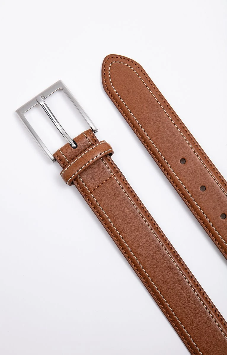 Ceinture en cuir uni lisse au grain fin, surpiquée et fermée par une boucle métallique rectangulaire à ardillon. Matière finement grainée en teinte unie. Largeur 35 mm. Fermeture par boucle rectangulaire avec ardillon en métal. Extrémité finie en pointe. Double couture bicolore sur tout le contour. Patte de maintien. Cette ceinture se glisse sous les passants d’un pantalon chino associé à un polo et des tennis dans un esprit décontracté.