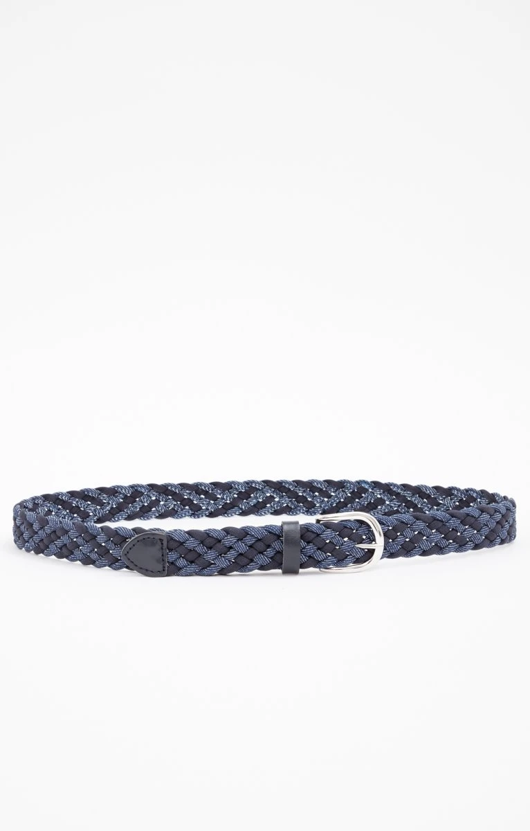 Ceinture tressée en coton. Tressage mêlant des bandes unies et d’autres à motifs pointillés, dans un dégradé de teintes. Largeur standard, idéale avec un jean. Fermeture par une boucle arrondie en métal argenté. Passant façon cuir à la base de la boucle. Empiècements façon cuir aux deux extrémités de la ceinture. Coutures ton sur ton. Composition en 100 % coton.