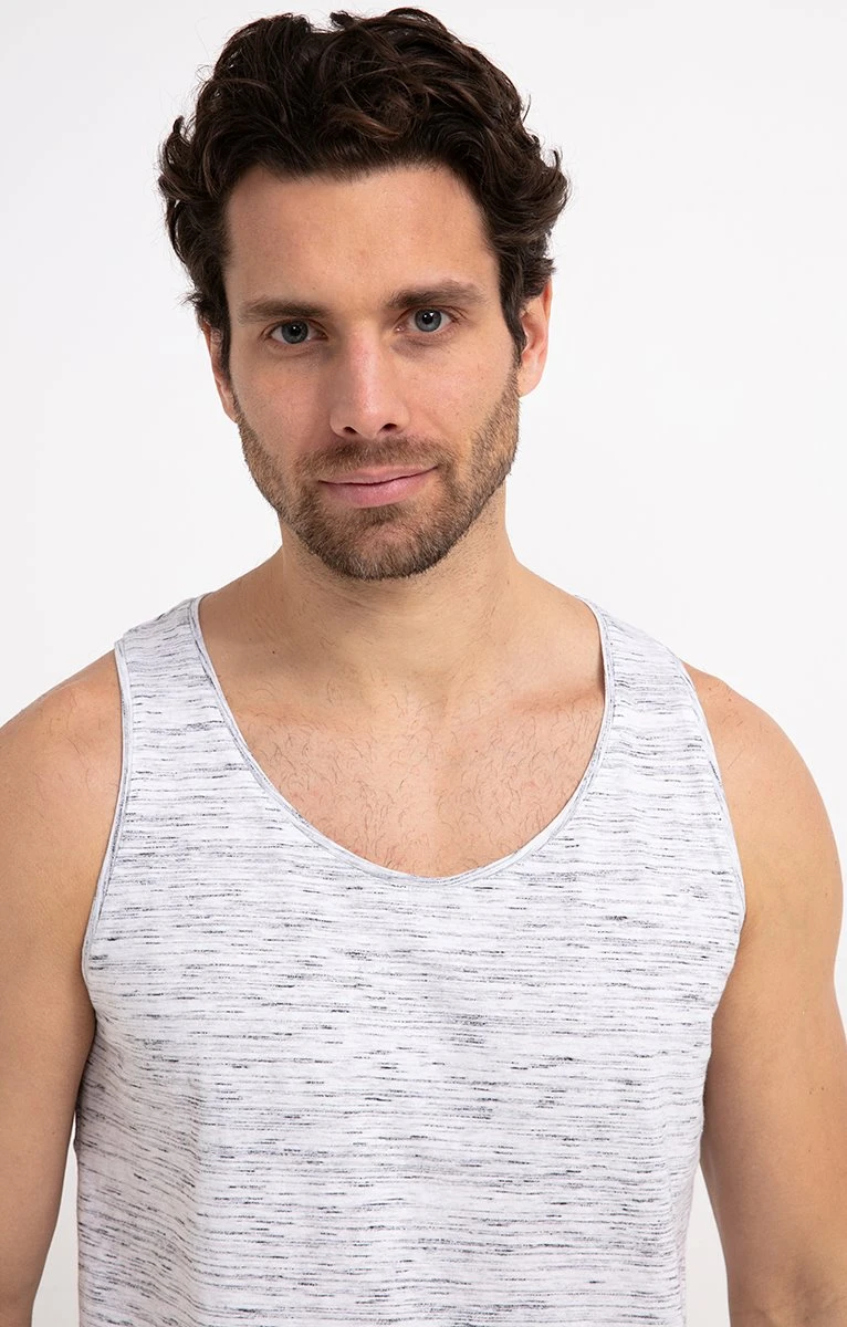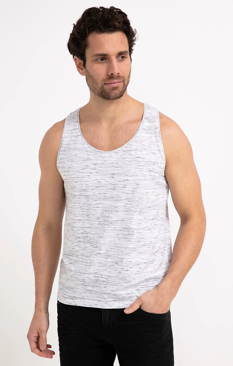 Optez pour ce débardeur à la coupe près du corps en coton majoritaire chiné pour accompagner vos tenues décontractées de tous les jours. Coupe ajustée. Sans manches. Col rond. Multicolore de teinte chinée. Maille jersey. Base droite. Finitions ourlées. Composition en coton majoritaire. Notre mannequin Joffrey mesure 1m88 et porte un t-shirt taille M.