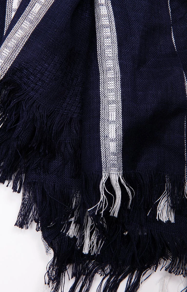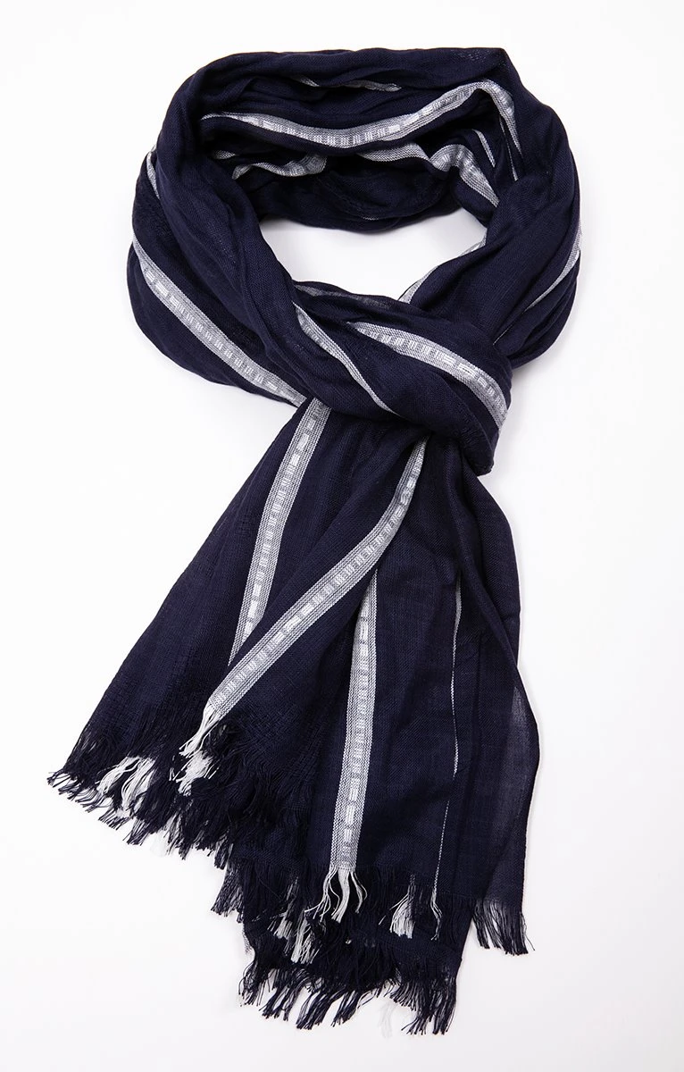 Rehaussée de lignes verticales contrastantes en pointillés, cette écharpe fine à franges complètera une tenue casual chic ou habillée. Forme rectangulaire. Tissage lâche et respirant. Rayures fines contrastantes à motifs géométriques dans le sens de la hauteur. Finitions franges aux deux extrémités.