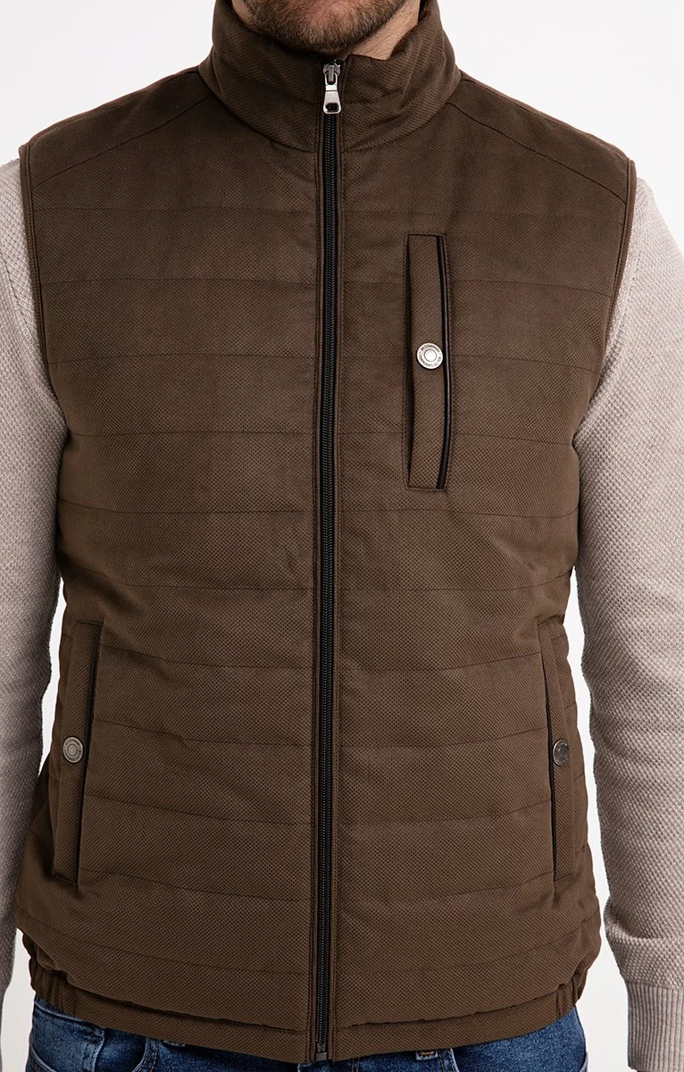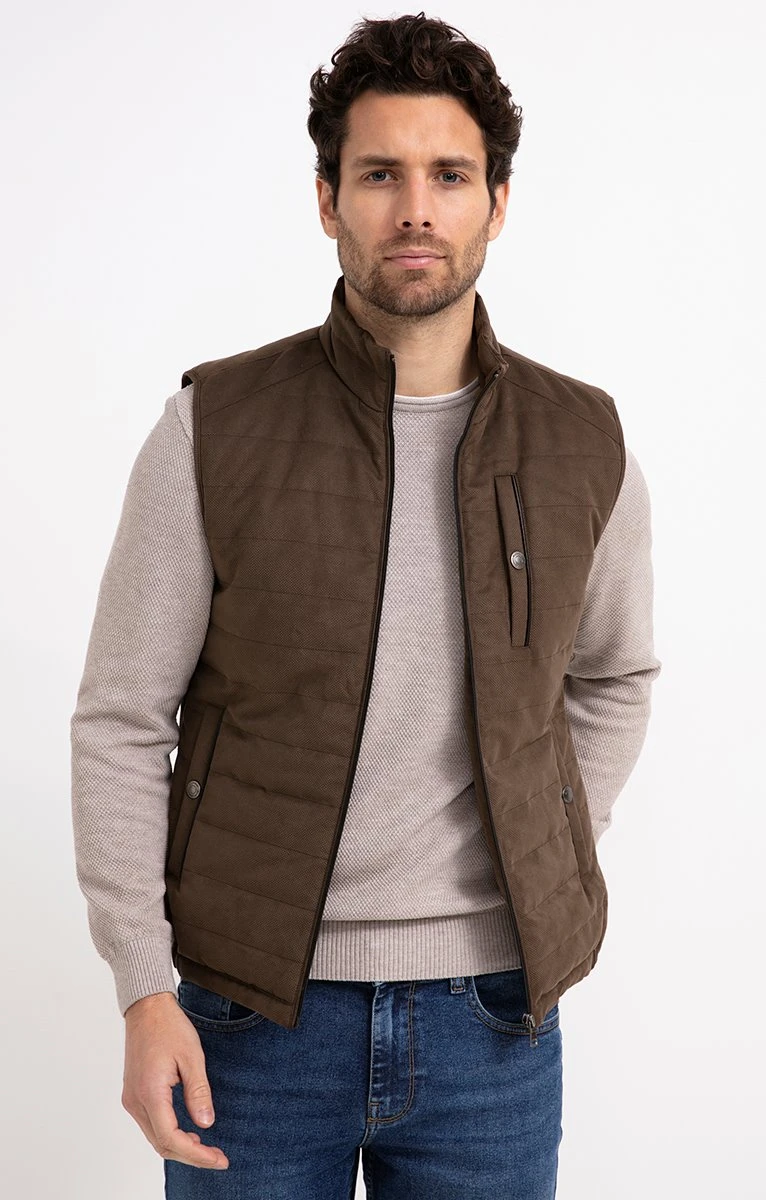 Doudoune suédée zippée à col montant et poches pressionnées garnie de polyester recyclé. Coupe droite légèrement ajustée. Sans manches. Col montant. Fermeture zippée. Une poche poitrine pressionnée, 2 poches raglan à boutons-pressions à la taille et une poche intérieure zippée sous patte. Coloris uni. Matière matelassée effet suédine. Empiècements aux épaules. Composition garnissage 100 % polyester recyclé. Notre mannequin Joffrey mesure 1m88 et porte une doudoune taille M.