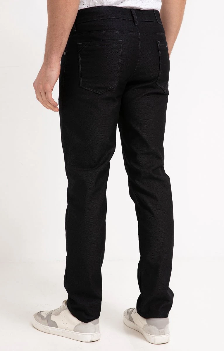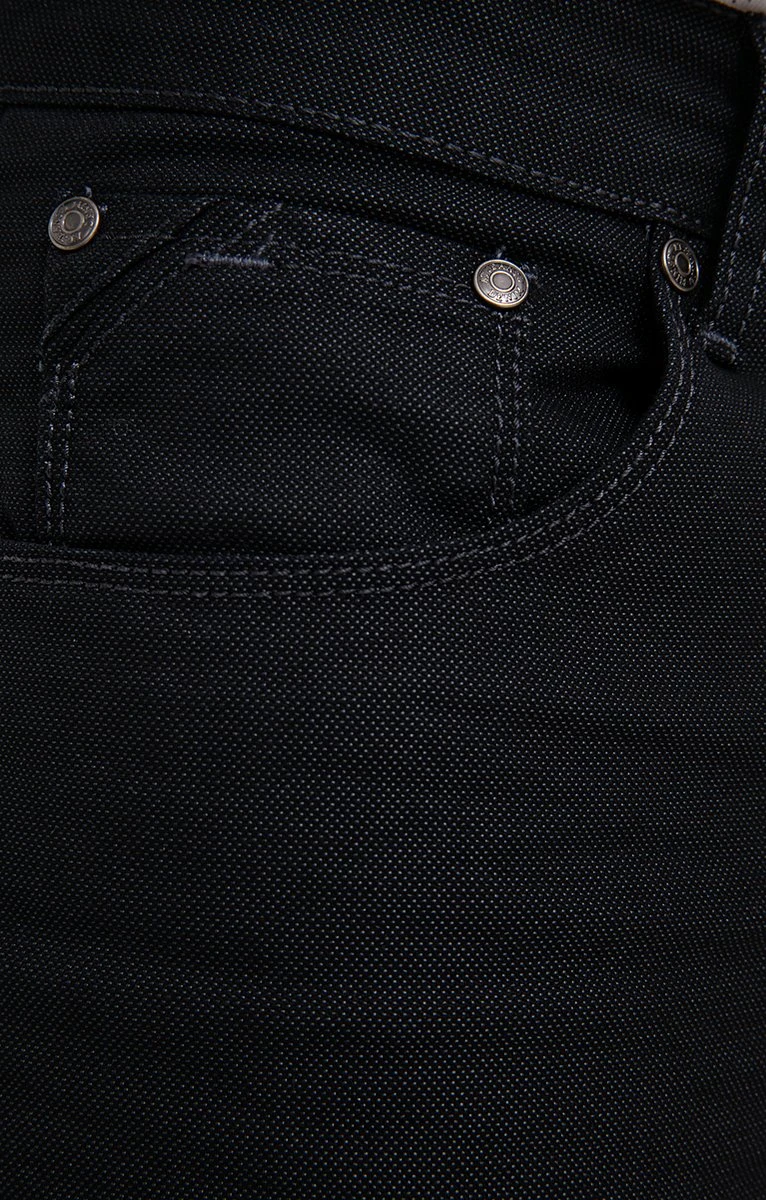 Jean straight 5 poches en denim extensible à mini-motifs pois. Coupe straight. Fermeture boutonnée et zippée. 2 poches cavalières et une poche ticket devant, 2 poches plaquées au dos. Bicolore à micromotifs pois tissés. Denim extensible. Passants à la taille. Jacron au dos. Gamme gravée sur le bouton et les rivets devant. Poche ticket et poches plaquées avec découpe aux coins. Composition en coton majoritaire. Notre mannequin Joffrey mesure 1m88 et porte un jean taille 42.