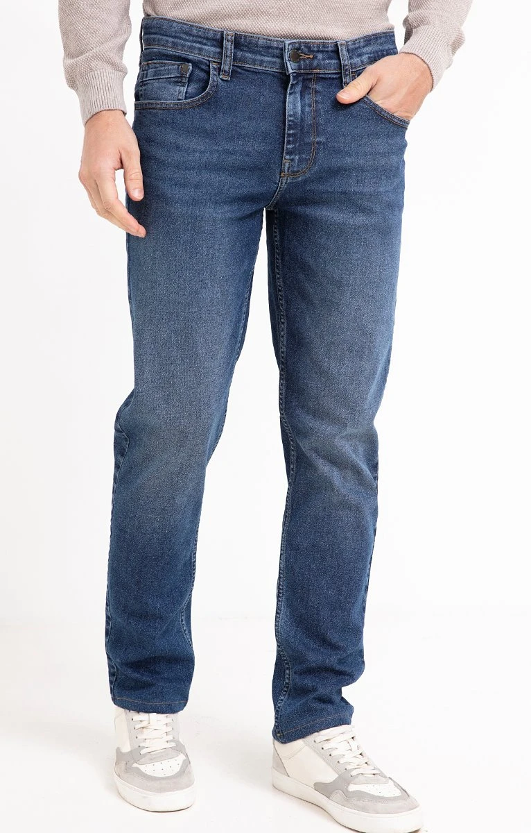 Jean regular 5 poches en denim extensible délavé en coton majoritaire. Coupe regular. Fermeture à bouton en métal et zip. 2 poches cavalières et une poche ticket devant, 2 poches plaquées avec découpes au dos. Coloris délavé. Denim extensible. Surpiqûres contrastées. Jacron en denim embossé. Rivets métalliques et bouton gravés du nom de la gamme. Empiècement en haut du dos. Composition en coton majoritaire. Notre mannequin Joffrey mesure 1m88 et porte un jean taille 42.