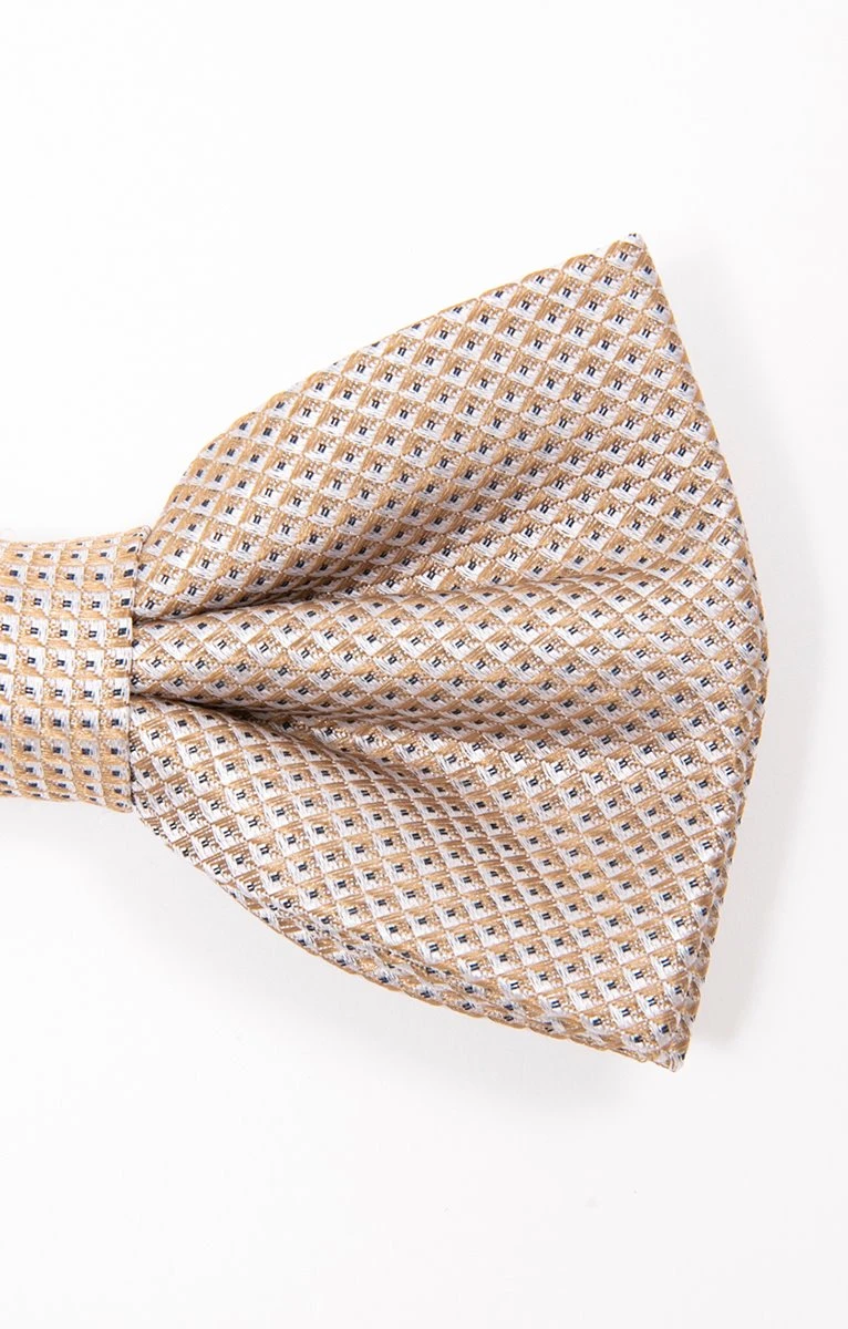 Nœud papillon à motifs géométriques fantaisie. Matière lisse et soyeuse. Motifs géométriques fantaisie en forme de losange dans deux teintes contrastantes. Composition 100% soie. Ce nœud papillon viendra compléter une tenue de cérémonie composée d’un costume noir, de derbies en cuir et d’une chemise blanche à manches longues.