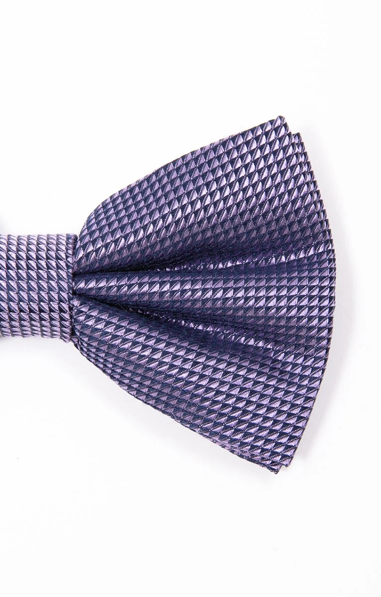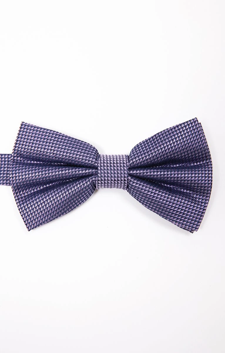 Nœud papillon à motifs mini diamants. Matière lisse et soyeuse à reflets, pour un rendu élégant. Motifs géométriques façon mini diamants dans deux teintes assorties. Composition 100% soie. Ce nœud papillon viendra rehausser une tenue habillée sobre composée d’un costume noir et d’une chemise blanche à manches longues.