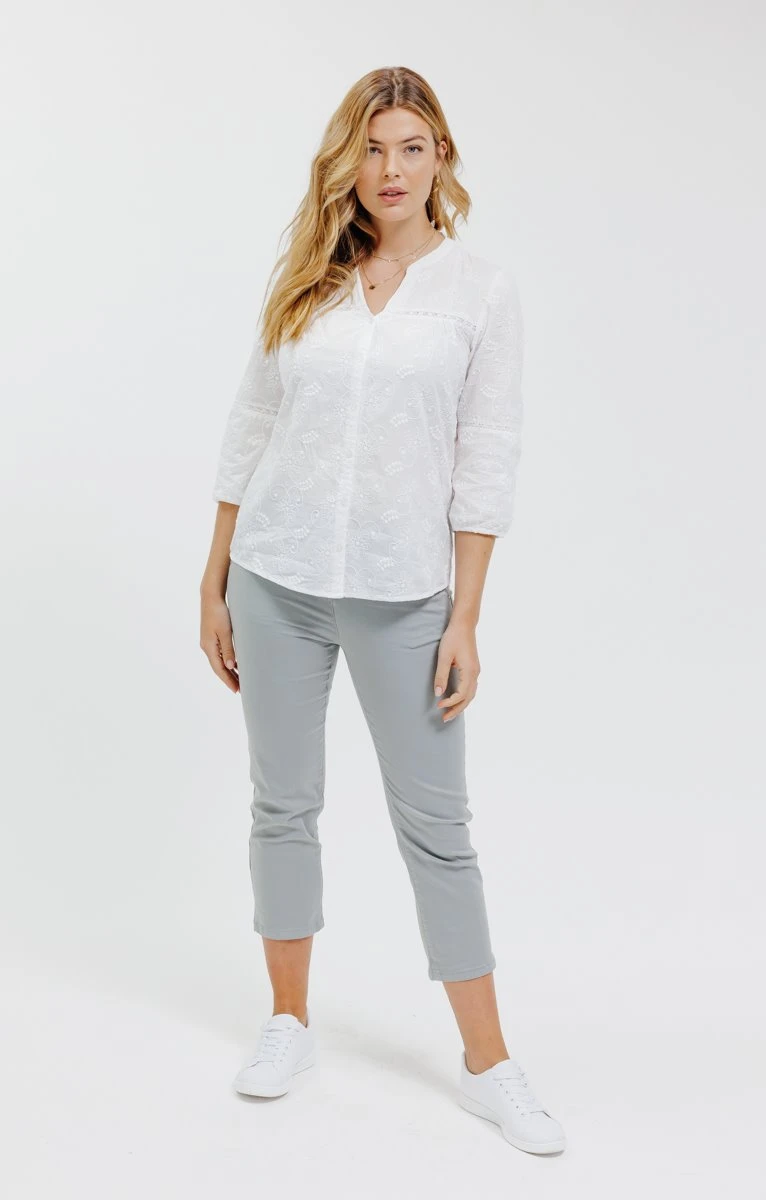 Pantacourt avec boutons sur les côtés. Coupe ajustée. Fermeture zippée et boutonnée. 2 poches italiennes à l’avant, 2 poches plaquées au dos. Pantacourt uni confectionné en tissu sergé extensible. 3 boutons placés de chaque côté à l’avant à la manière d’une fermeture à pont. Strass sur les poches avant. Bas fendu sur les côtés. Coutures ton sur ton. Composition contenant du coton. Notre mannequin Frédérique mesure 1m78 et porte un pantacourt taille 36.