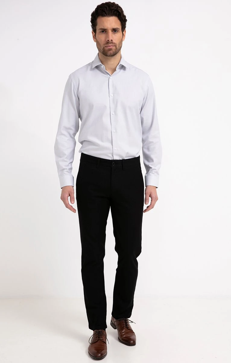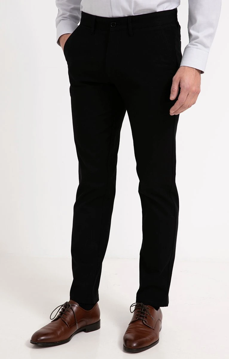 Pantalon chino en coton stretch uni. Coupe regular. Longueur pied. Fermeture zippée et boutonnée. 2 poches italiennes et une poche ticket passepoilée sous la ceinture devant. 2 poches passepoilées à boutons au dos. Coloris uni. Toile texturée. Matière extensible. Coutures de renfort sur les poches. 4 petites pinces au dos. Boutons gravés ton sur ton. Passants pour ceinture. Composition en coton majoritaire. Notre mannequin Joffrey mesure 1m88 et porte un pantalon taille 42.