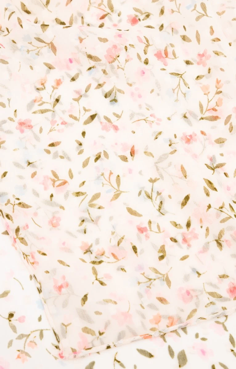 Grand foulard en voile imprimé floral multicolore et plumetis carrés. Grand format rectangulaire. Voile léger brodé de plumetis de forme carrée en ton sur ton. Multicolore à motifs petites fleurs et feuilles. Ourlet en finition de l’ensemble du pourtour. Le style frais de ce foulard floral s’accorde à une tenue du quotidien composée d’une robe fluide portée avec des sandales à petits talons.