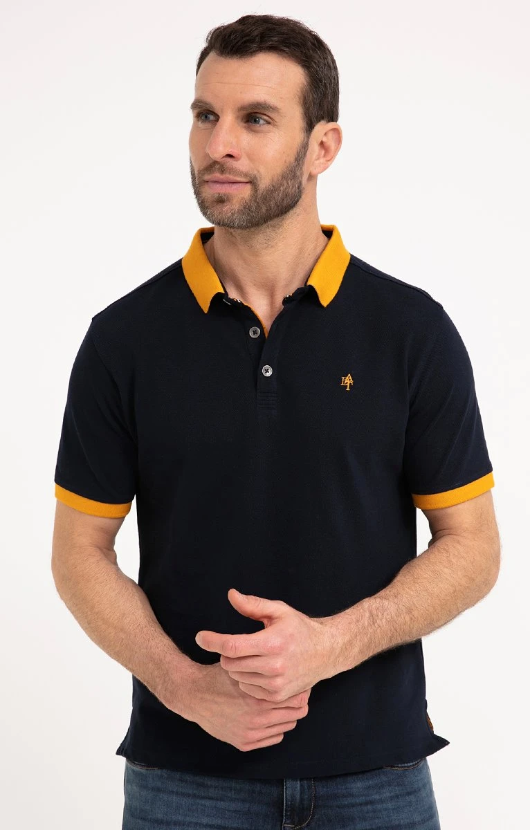 Polo en coton uni. Coupe droite. Manches courtes avec bordure contrastante. Col polo contrastant. Fermeture boutonnée. Coloris uni. Maille piquée. Galon de renfort rayé au pied de l’encolure. Revers du col avec inscription. Empiècement rond en haut du dos. Petits boutons liserés. Mini logo contrastant sur la poitrine. Base droite avec petites fentes sur les côtés. Composition 100% coton. Notre mannequin Joffrey mesure 1m88 et porte un polo taille M.