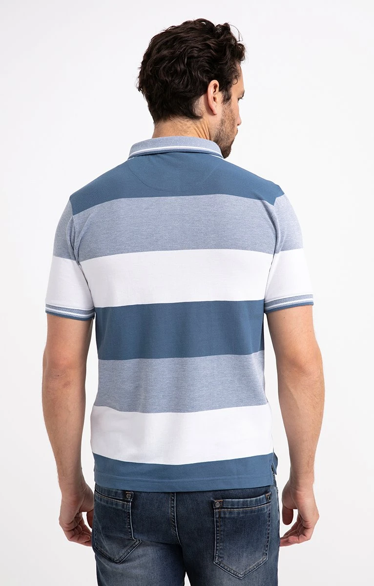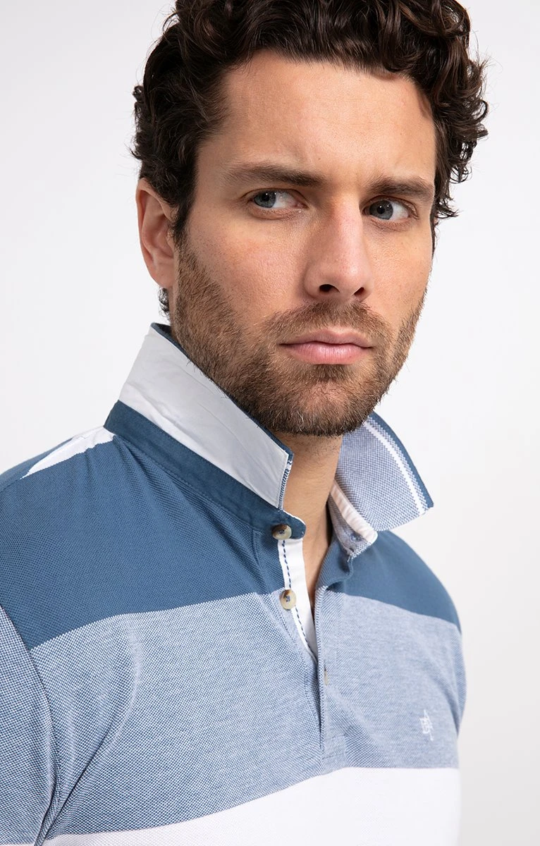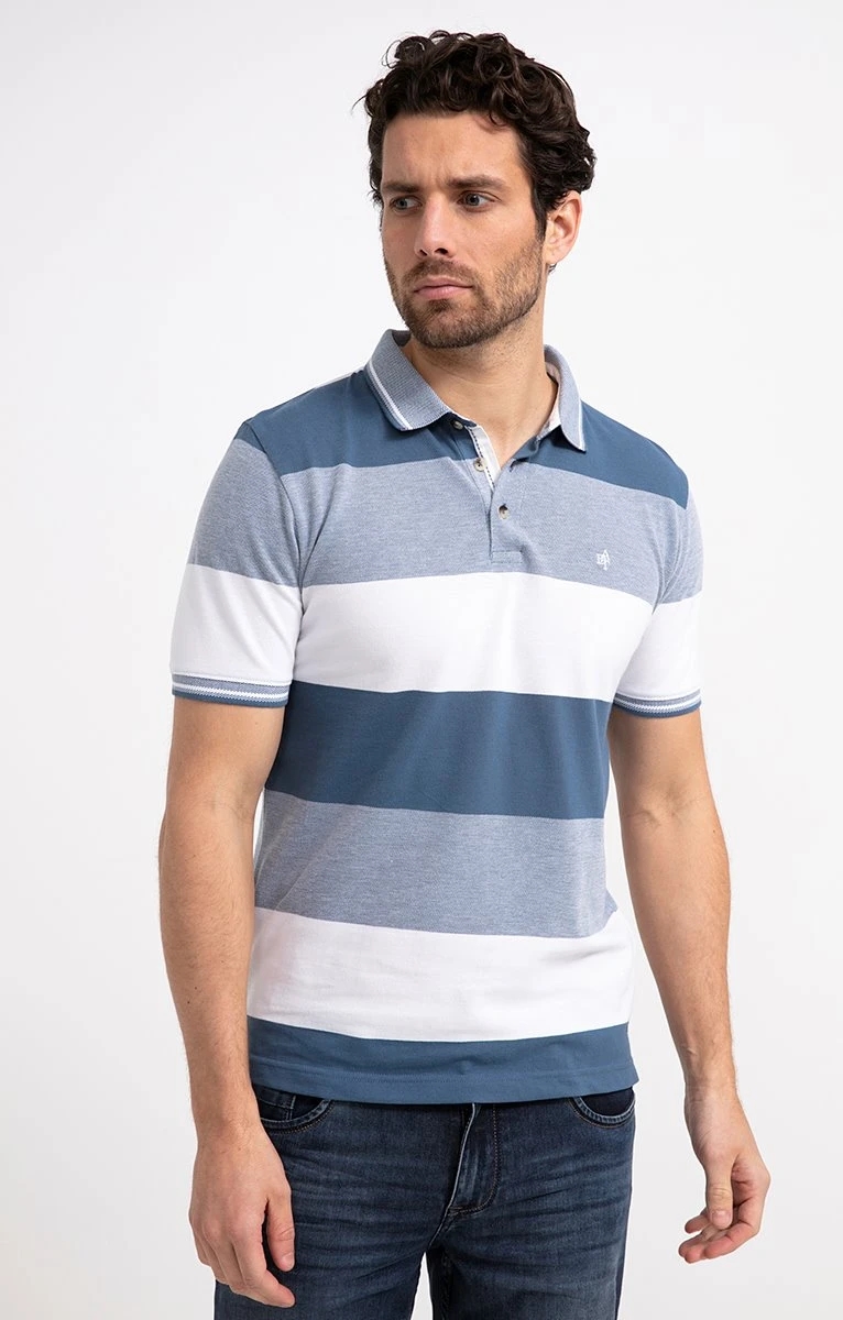 Polo rayé à manches courtes. Coupe ajustée. Manches courtes. Col polo côtelé avec bordure rayée. Fermeture boutonnée. Polo à rayures. Larges bandes régulières, certaines à effet chiné. Tissu en maille piquée. Mini logo brodé au niveau de la poitrine. Empiècement de renfort rond dans le haut du dos. Base droite avec petites fentes sur les côtés. Composition 60% coton et 40% polyester recyclé. Notre mannequin Joffrey mesure 1m88 et porte un polo taille M.