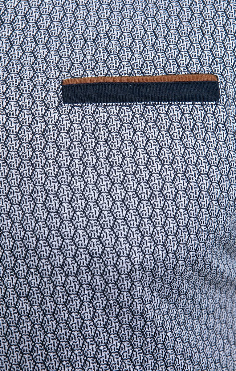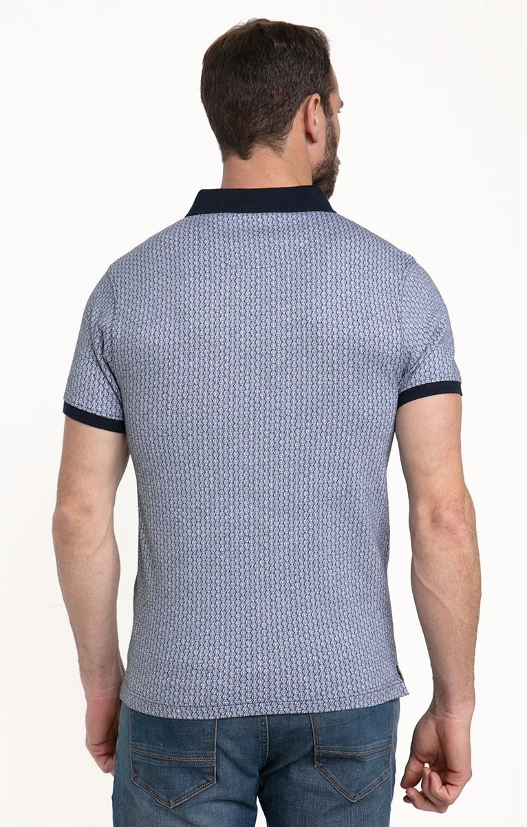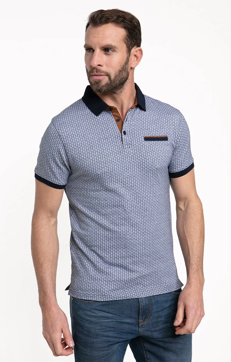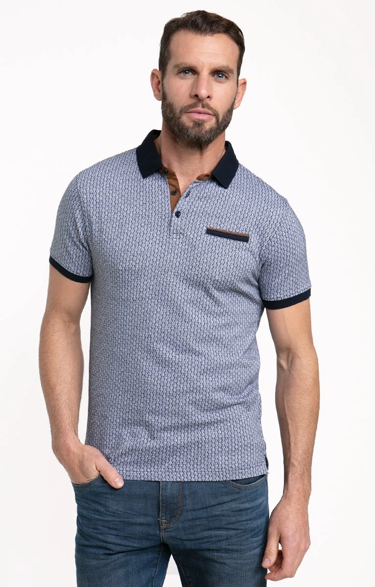 Polo manches courtes en coton à mini-motifs. Coupe droite. Manches courtes avec bord élastiqué contrastant. Col polo uni. Fermeture par 3 boutons au col. Une poche passepoilée bicolore sur la poitrine. Imprimé à mini-motifs géométriques, sur l’ensemble du modèle. Intérieur du col et de la patte boutonnée contrastant. Composition 100 % coton. Notre mannequin Nicolas mesure 1m87 et porte un polo taille M.