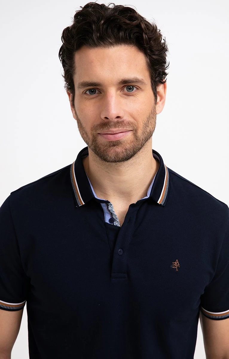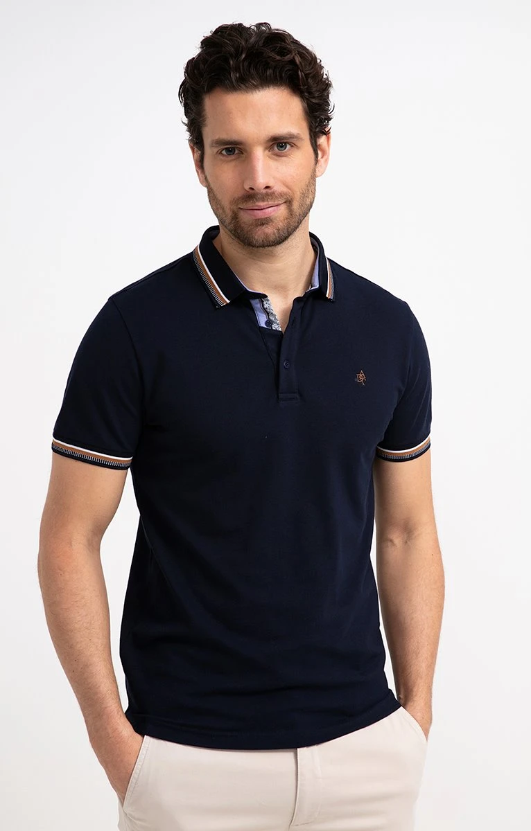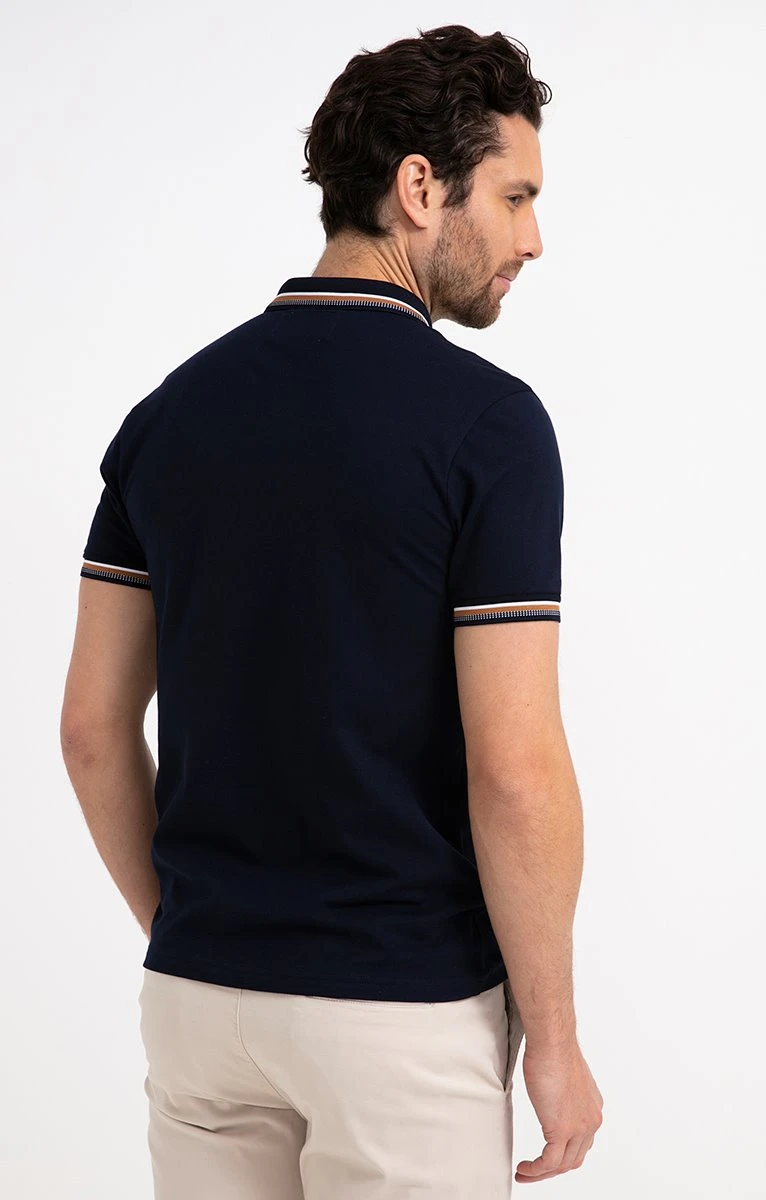 Polo uni à manches courtes avec détails à rayures. Coupe ajustée. Manches courtes avec finition bord-côte. Col polo côtelé. Encolure boutonnée. Fausse poche passepoilée à bouton au niveau de la poitrine. Coloris uni. Polo en maille piquée. Finitions à rayures assorties aux manches, à l’encolure et à la poche. Galon à rayures sur la patte de boutonnage. Base droite. Composition contenant du coton. Notre mannequin Joffrey mesure 1m88 et porte un polo taille M.