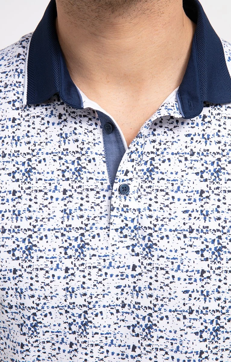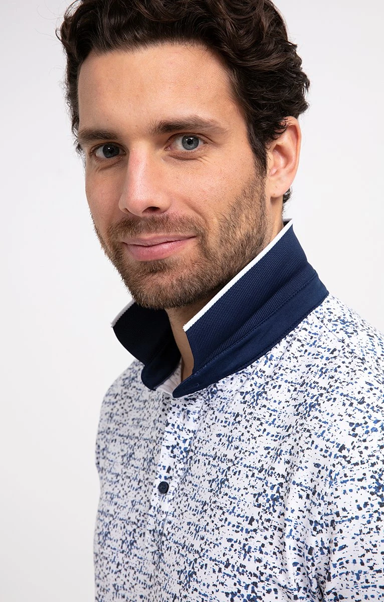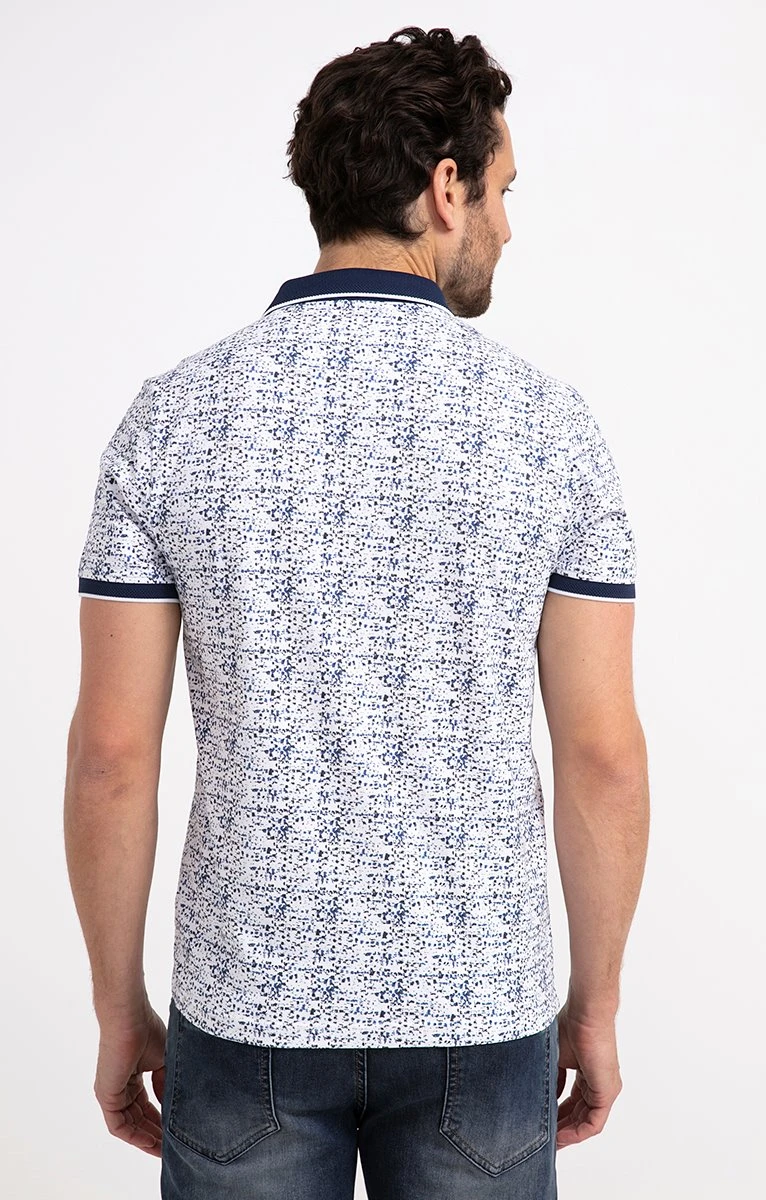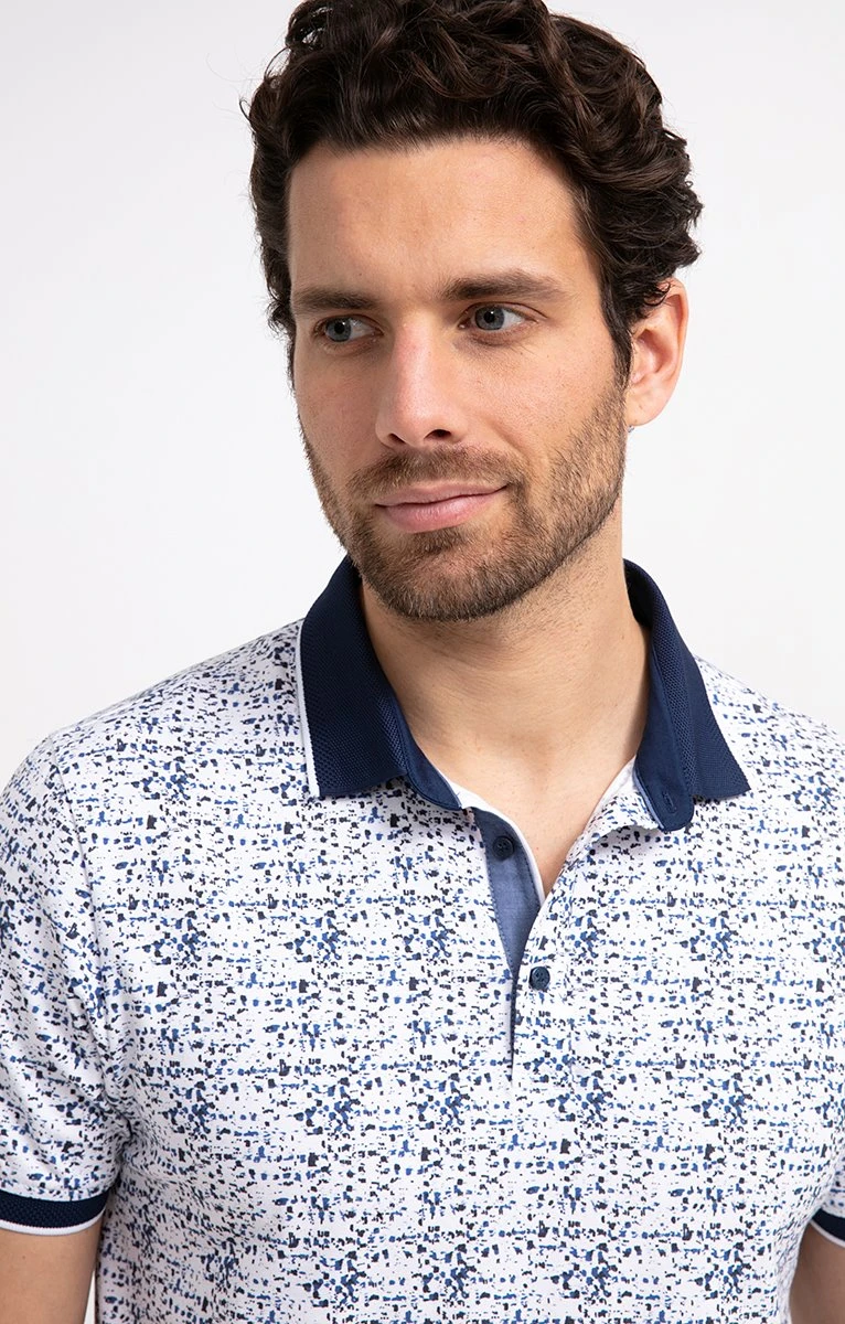Polo en coton stretch imprimé effet taches de peinture à manches courtes. Coupe ajustée. Manches courtes. Col polo. Encolure boutonnée. Imprimé graphique. Motifs effet taches de peinture en all over. Modèle en maille extensible. Encolure et manches en maille texturée avec bordure à liseré. Patte de boutonnage avec renfort en tissu façon jean. Base droite. Composition en coton majoritaire. Notre mannequin Joffrey mesure 1m88 et porte un polo taille M.