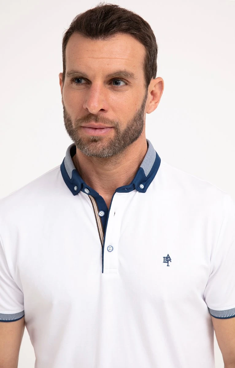 Polo uni à manches courtes détails contrastants. Coupe ajustée. Manches courtes droites. Col polo contrastant à pointes boutonnées, détail application bicolore. Patte de boutonnage, 3 petits boutons cerclés. Coloris uni. Matière fine. Sous-patte de boutonnage contrastante avec galon rayé. Bord-côte rayé en finition des manches. Broderie logo contrastant sur la poitrine. Composition contenant du coton. Notre mannequin Nicolas mesure 1m87 et porte un polo taille M.
