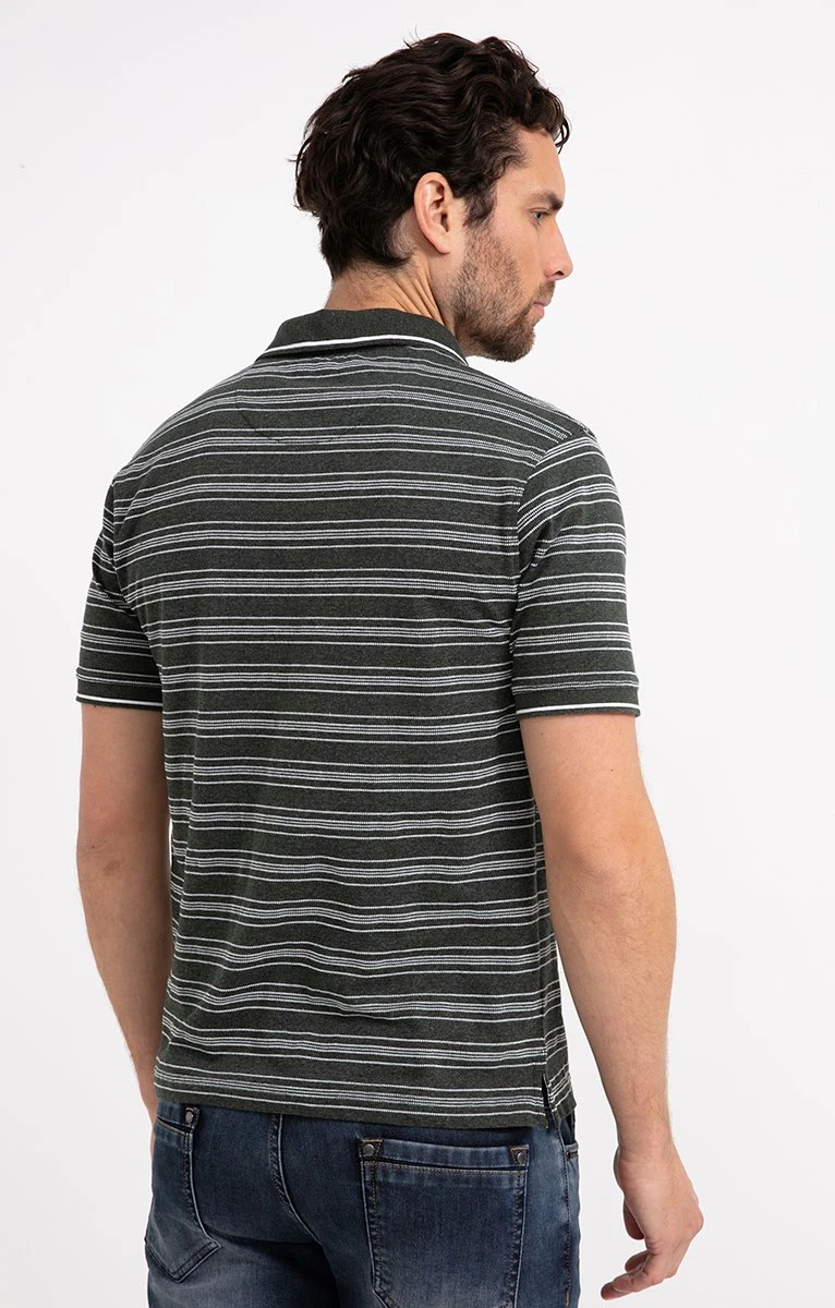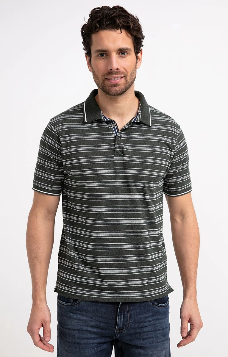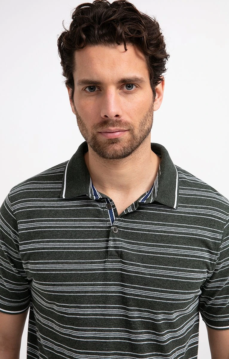 Polo ajusté rayé à manches courtes en coton et polyester recyclé. Coupe ajustée. Manches courtes. Col polo. Fermeture à boutons cerclés en métal. Bicolore à rayures. Maille jersey. Côtés fendus. Bords-côtes rayés au col et en finition des manches. Galon contrasté surpiqué patte de boutonnage et pied de col. Tissu contrasté en doublure du col. Composition en coton mélangé et contenant du polyester recyclé. Notre mannequin Joffrey mesure 1m88 et porte un polo taille M.