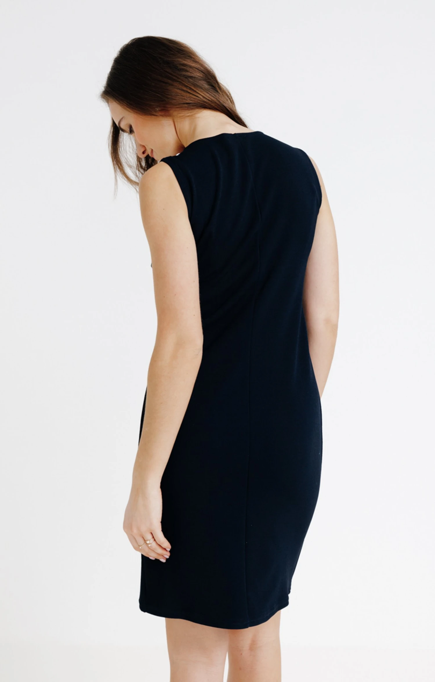 Robe cintrée sans manches dotée de boutons décoratifs sur l’épaule, en maille extensible avec rayures devant et col contrastés. Coupe ajustée. Longueur genou. Sans manches. Col rond contrasté. Fermeture zippée au dos. Bicolore avec 2 rayures devant. Dos uni. Maille extensible. Boutons bicolores ornementaux cousus sur l’épaule gauche. Notre mannequin Pauline mesure 1m73 et porte une robe taille 38.