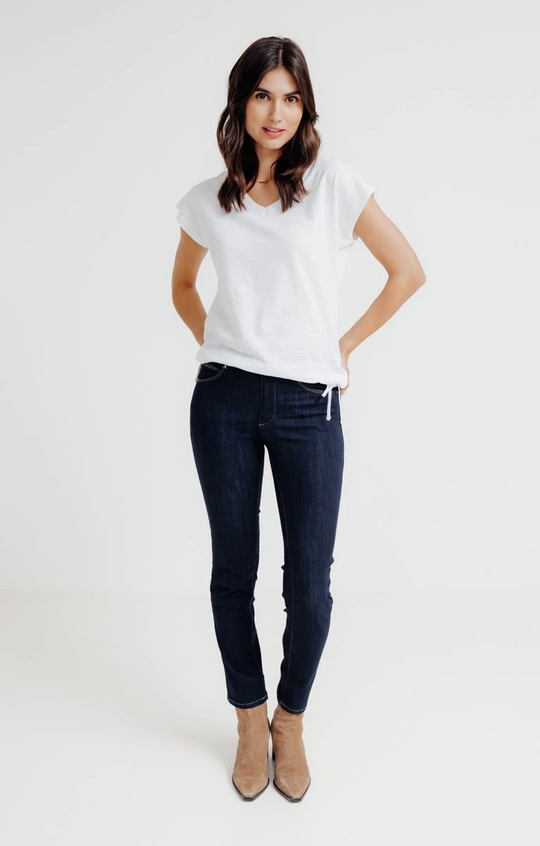 T-shirt uni en coton biologique avec strass et broderies sur le col. Coupe droite qui peut être resserrée à la base par un lien à nouer. Manches courtes sans emmanchures. Col en V. T-shirt en jersey flammé uni. Broderies contrastées tout autour du col. Strass à l’avant du col. Coutures ton sur ton. Composition 100% coton biologique. Notre mannequin Frédérique mesure 1m78 et porte un t-shirt taille 1.