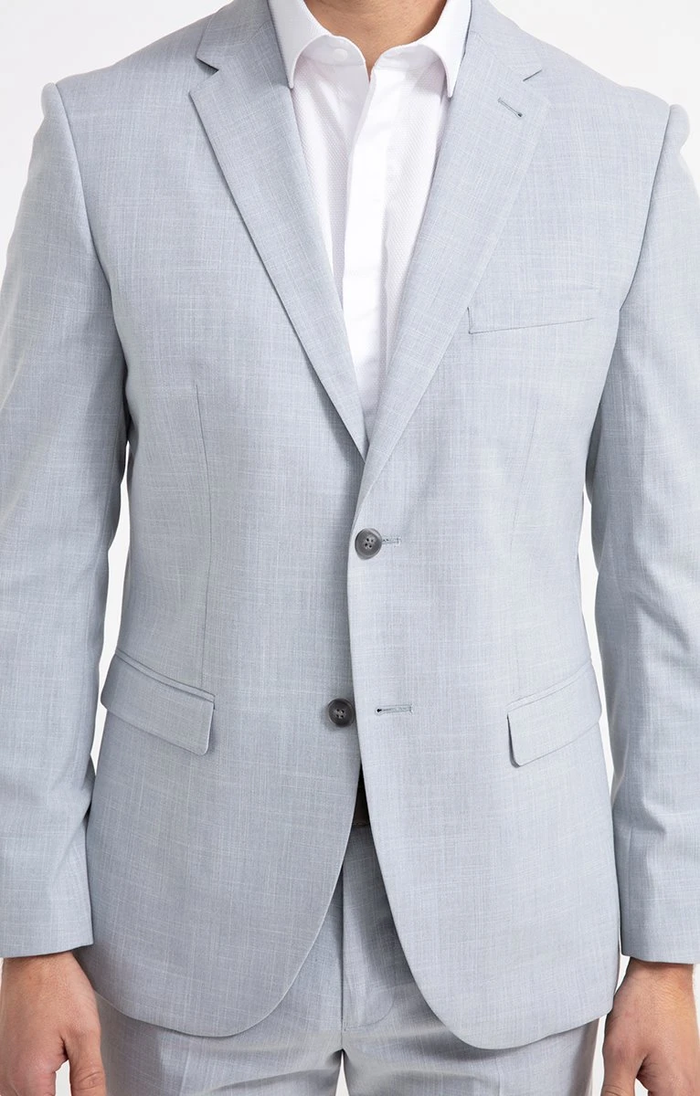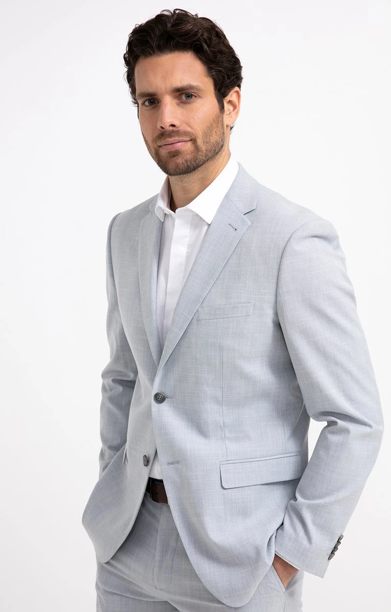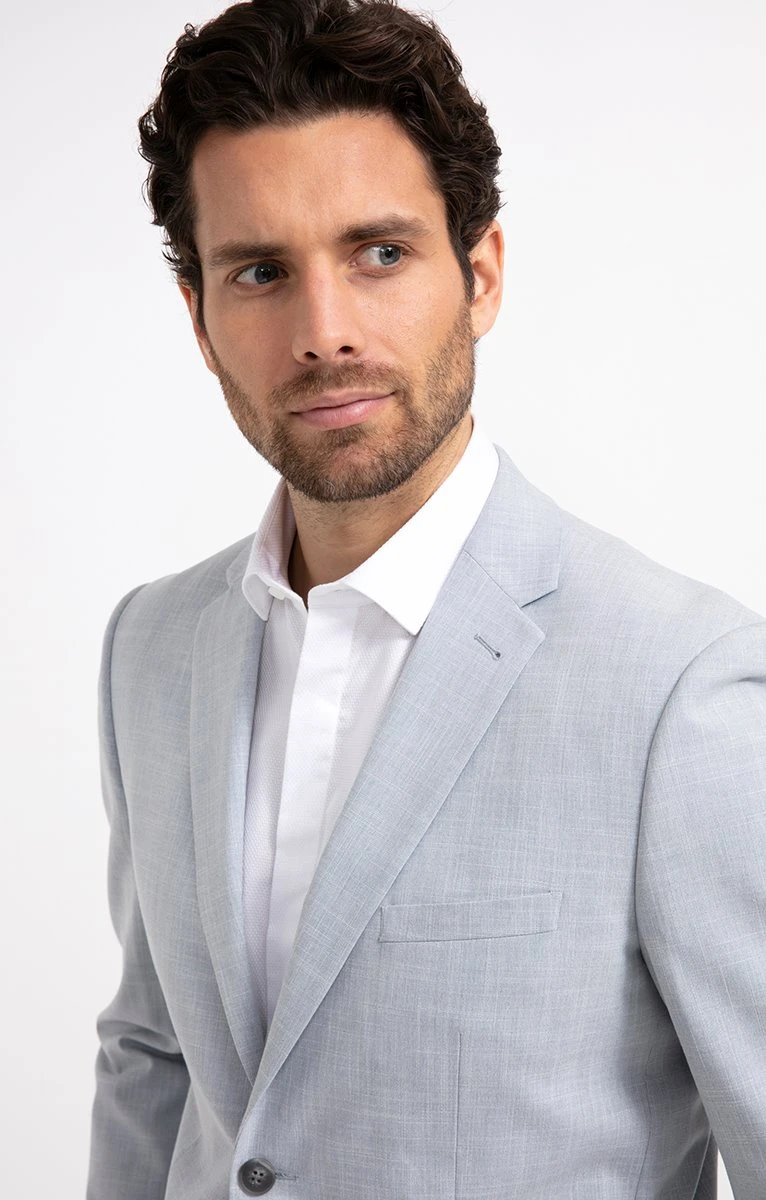 – Notre mannequin Jeoffrey mesure 1m88 et porte une veste taille 50